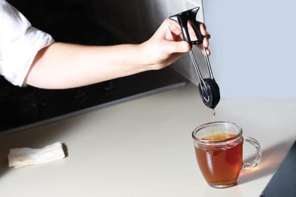 La boule à thé qui permet en 1 clic de prendre son thé, de laisser infuser et d'essorer sa boule sans en perdre une goutte mais aussi des spatules et cuillères en silicone très pratiques pour retourner et servir.