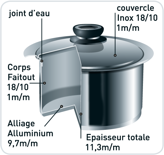 Grâce à son fond thermodiffuseur d'une incroyable épaisseur de 11 mm et à son thermomètre intégré sur le couvercle, vous ne raterz plus auncune cuisson.